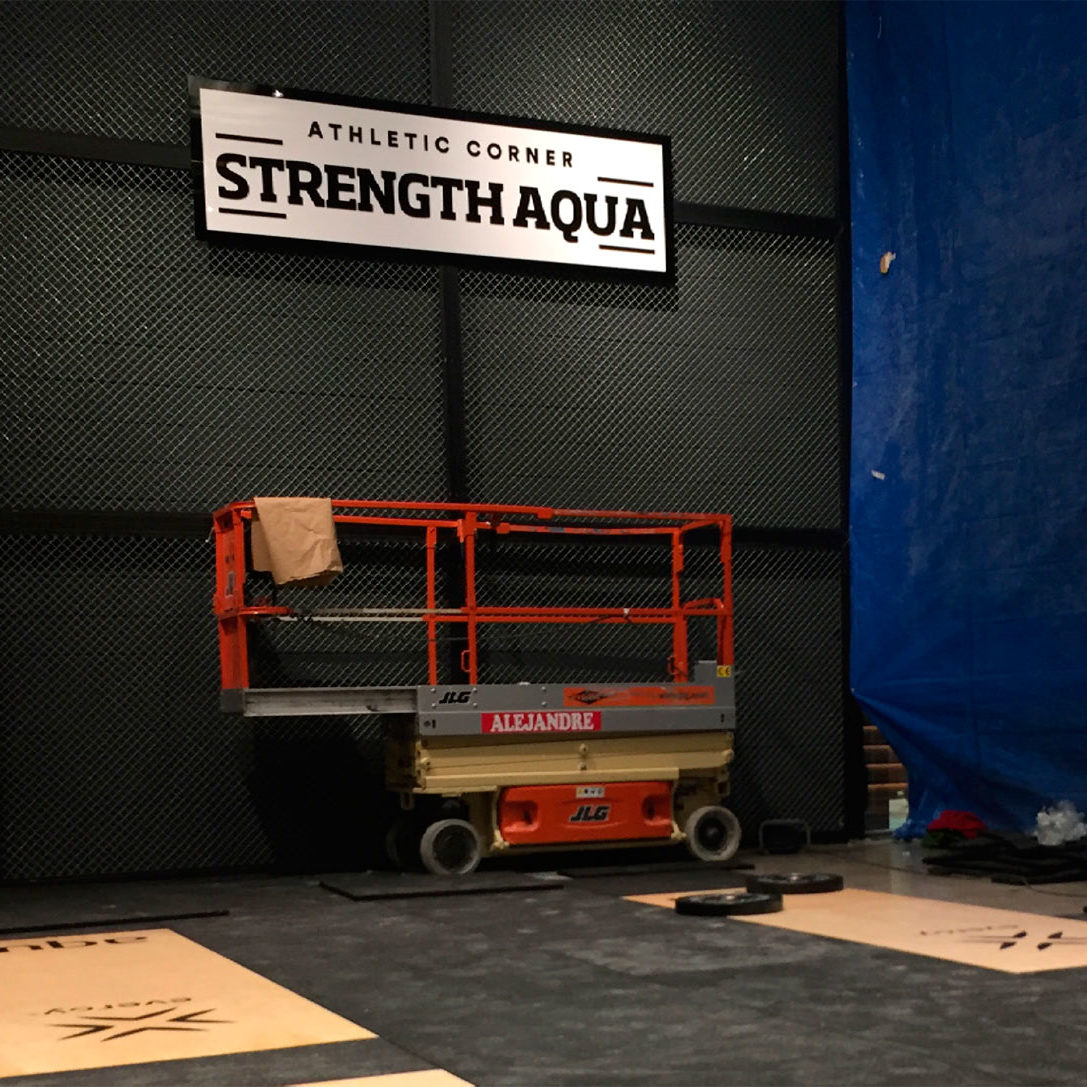 Fabricación y montaje rótulo «Athletic Corner». Esta pieza se ha realizado en diferentes capas de metacrilato blanco y negro fresadas y superpuestas.