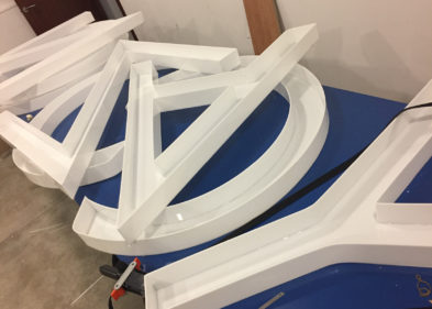 Disponemos de fresadora para control numérico para cortar y mecanizar todo tipo de materiales. Disponemos de una superficie de corte de 2,5 x 1,3m. Principalmente lo dedicamos a la producción de rótulos, aunque también realizamos mecanizado de piezas para industria y el sector naval.
