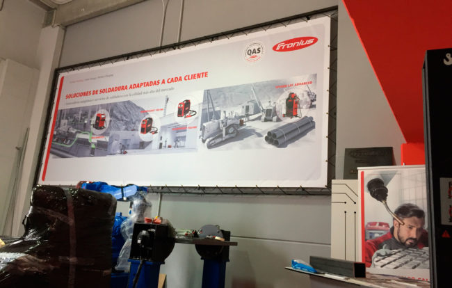 Fronius Cliente: Fronius Ubicación: Vilanova y la Geltrú Fecha del proyecto: 2017 Descripción del proyecto Impresión lona gran formato Fabricación y pintado estructura de acero Instalación de la estructura y colocación lona Otros Proyectos relacionados