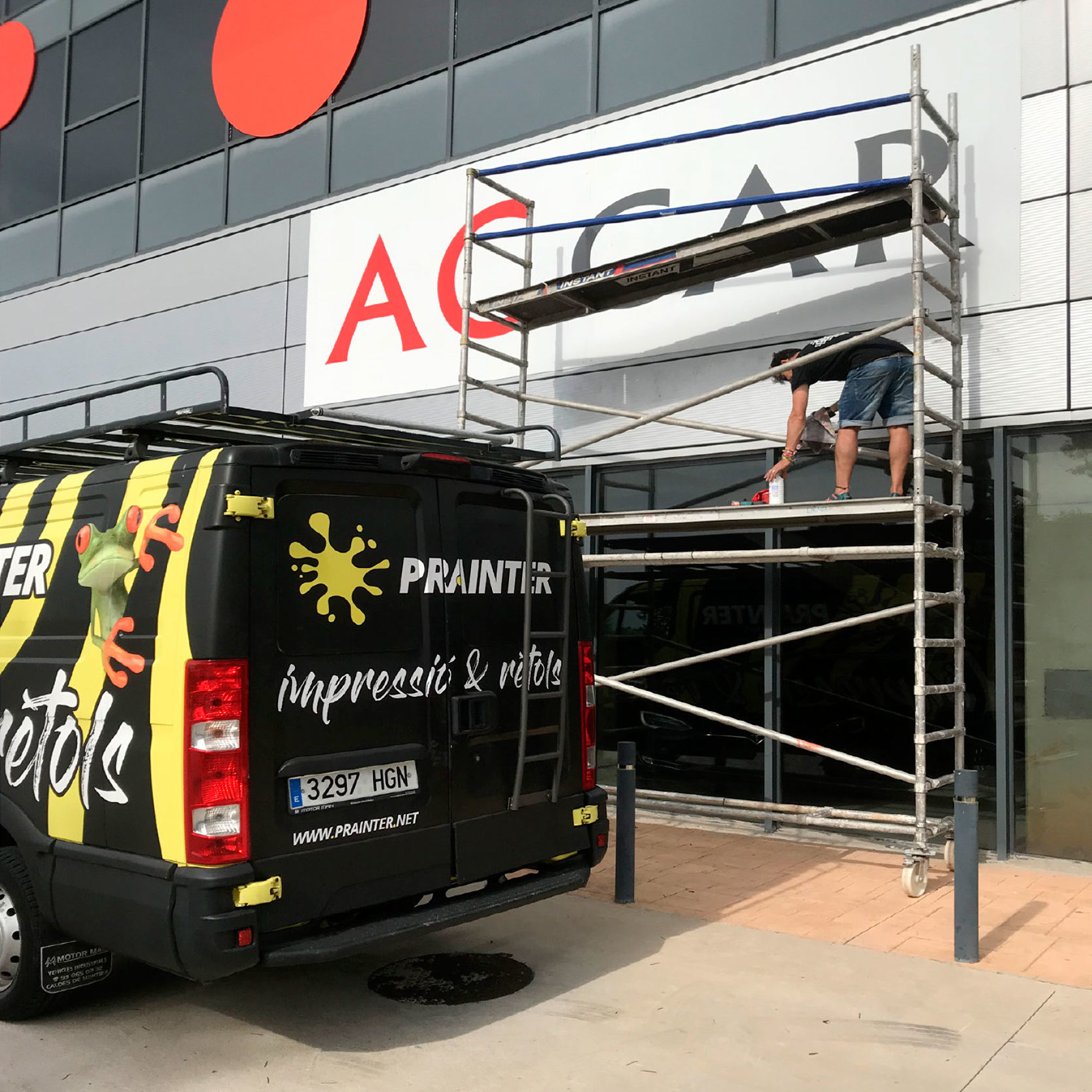 ACCAR necessitava retolar les noves instal·lacions a Vilanova i la Geltrú. En aquest cas vem utilitzar una placa de composite de grans dimensions i vem retolar la resta de façana amb vinil de tall.