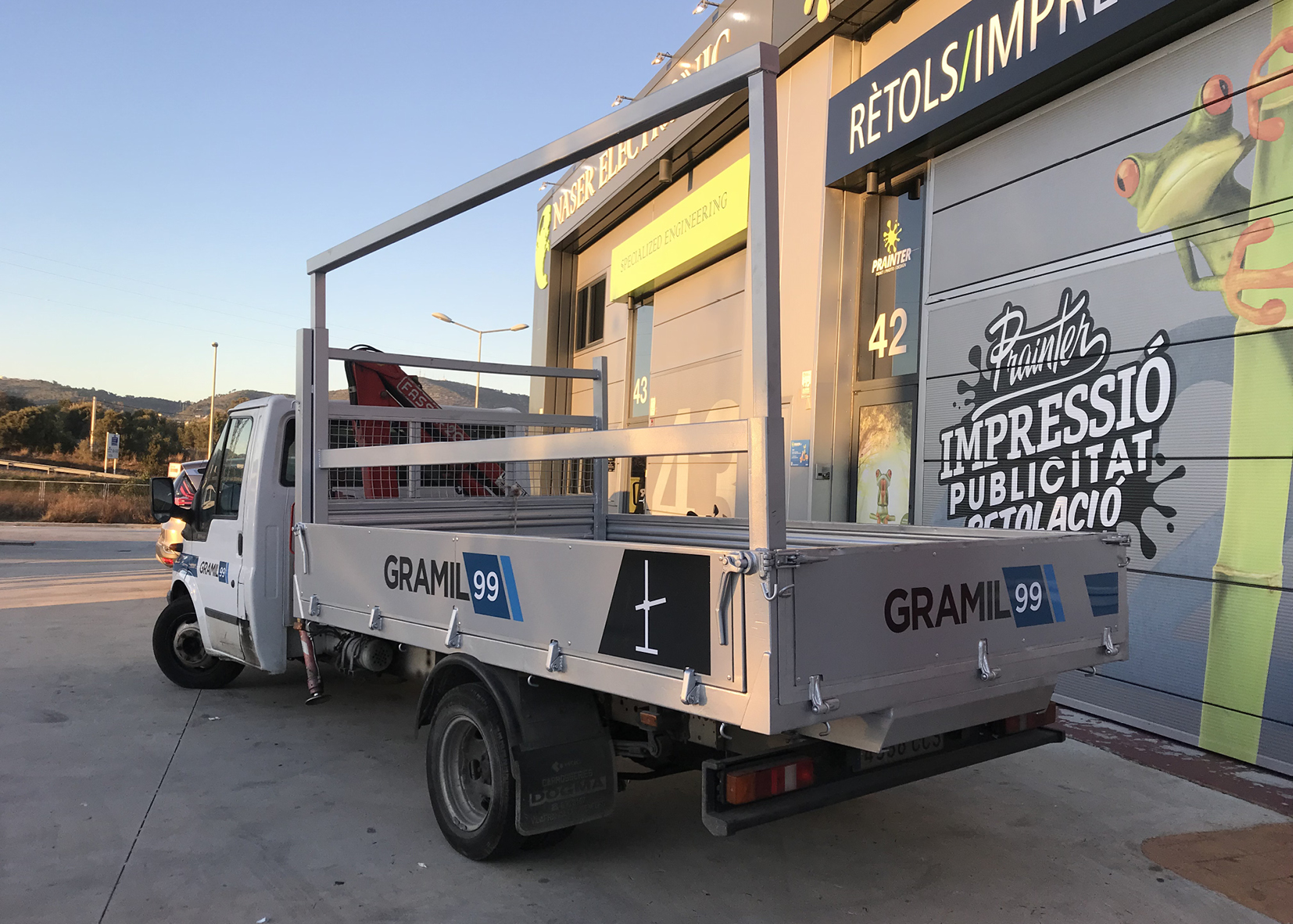 En aquest cas ens van encarregar una renovació intgral de la imatge de la empresa i la seva aplicació. Vem dissenyar un logotip que encaixava perfectament amb l’empresa i vem fer l’aplicació de la nova imatge a material corporatiu, retolació de les naus i retolació de la flota de vehicles.